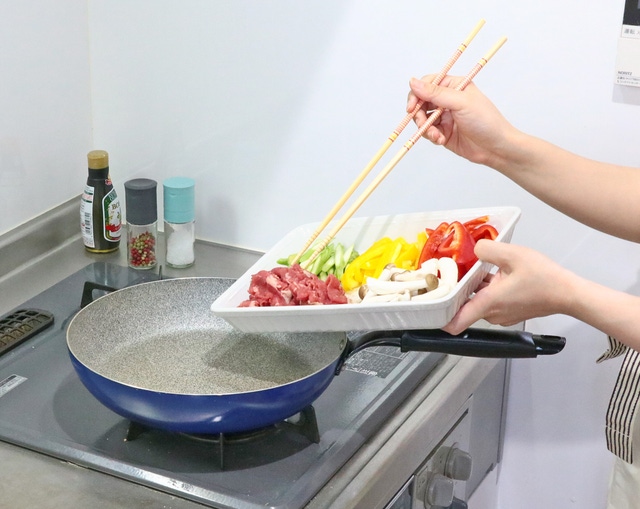 一皿にまとまっているので、フライパンに移すのもあっという間!