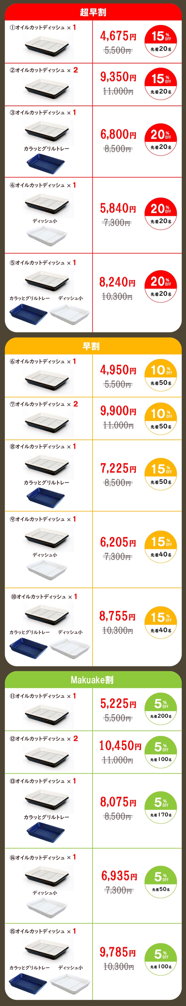 【Makuake割】オイルカットディッシュ×1カラー + ディッシュ小