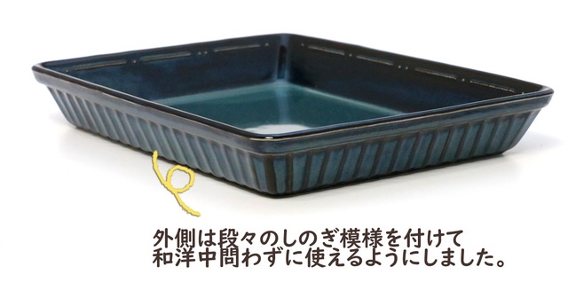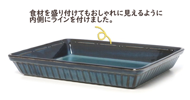 こだわったのは、食卓でも気分があがるようにお洒落なお皿にすること!バットやホーローのようにツルんとした質感ではなく、シンプルながらもスタイリッシュに見えるように内外に模様を付けました。