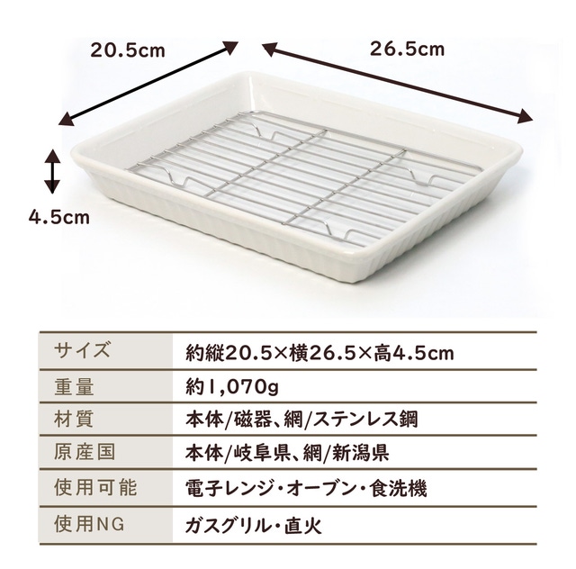 揚げ物をしたら油切りバットを使わずに、直接盛り付けができる器です。天ぷらや揚げ物がしんなりせずに美味しく味わえます!
