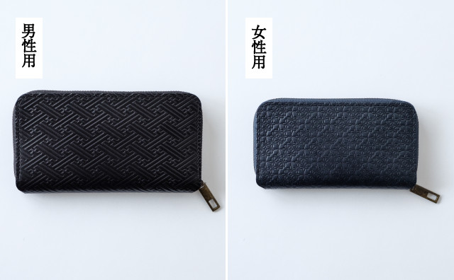 いにしえより受け継がれている日本伝統を大切にしよう、という意味合いもこめて、ケースのデザインには、着物の柄としても好まれている紋様を採用しています。男性用には、安土桃山時代に中国からもたらされた絹織物の地紋として多く使われていた紗綾型(さやがた)の模様を、女性用には、平安時代、公家の調度品や衣装に用いられていた花菱の模様をかたどっています。