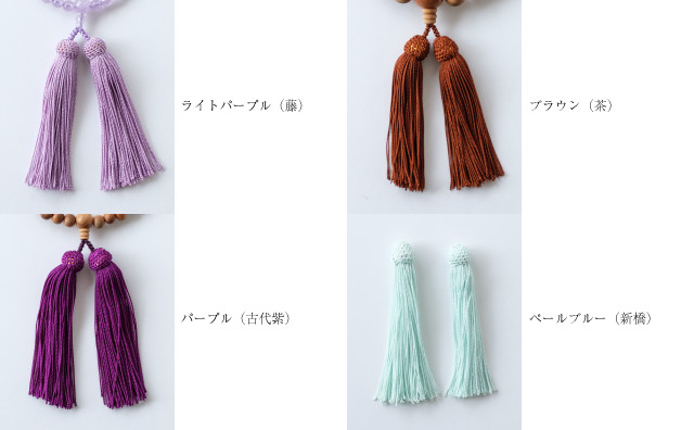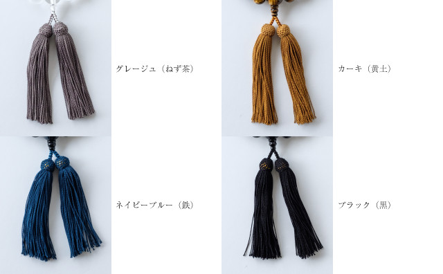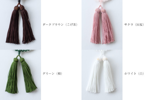 またMakuake限定特別仕様として石の選択はできませんが、オリジナルの房を4種各10セットのみご用意。通常1種類で編む房をグラデーションで表現しました。絹糸が織りなすやわらかな房をお楽しみください。