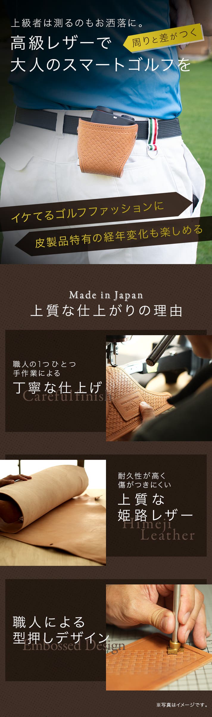 - ゴルフ好き薬剤師(華丸賞)のアイデアと、特許取得皮革職人の技術の融合。高級本革使用の純日本製