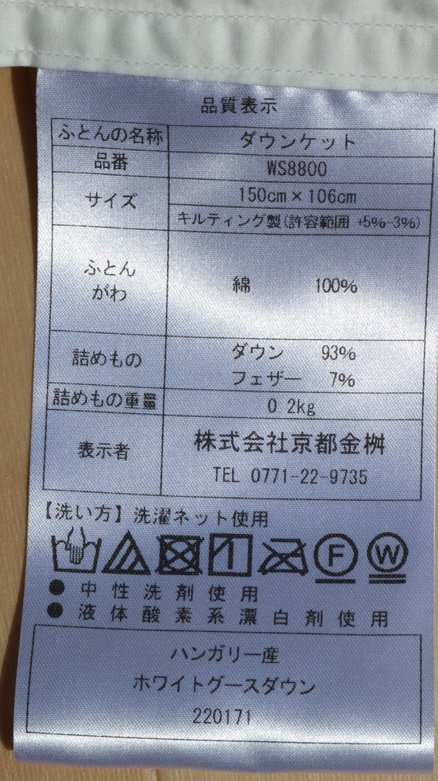 - ハンガリー産ホワイトグースダウン93%使用。ふっくら暖かで肌触りが柔らかい。