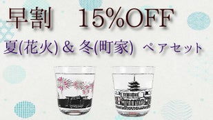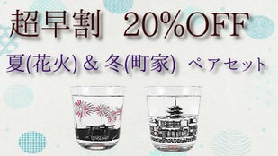 【早割】四季を彩る京のグラス 夏(花火)& 冬(町家)ペアセット