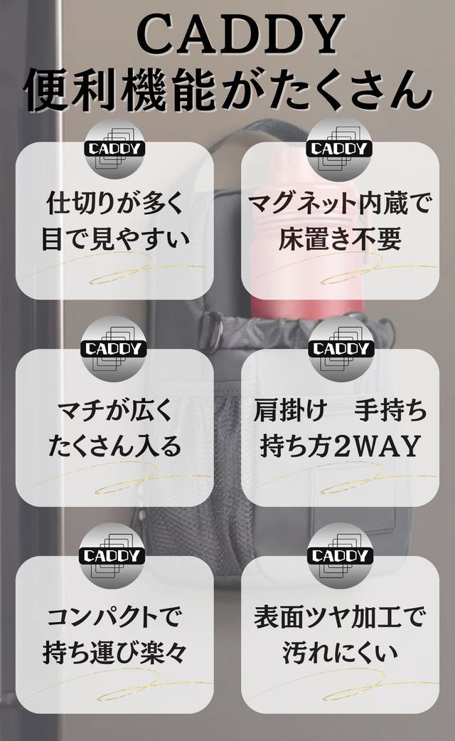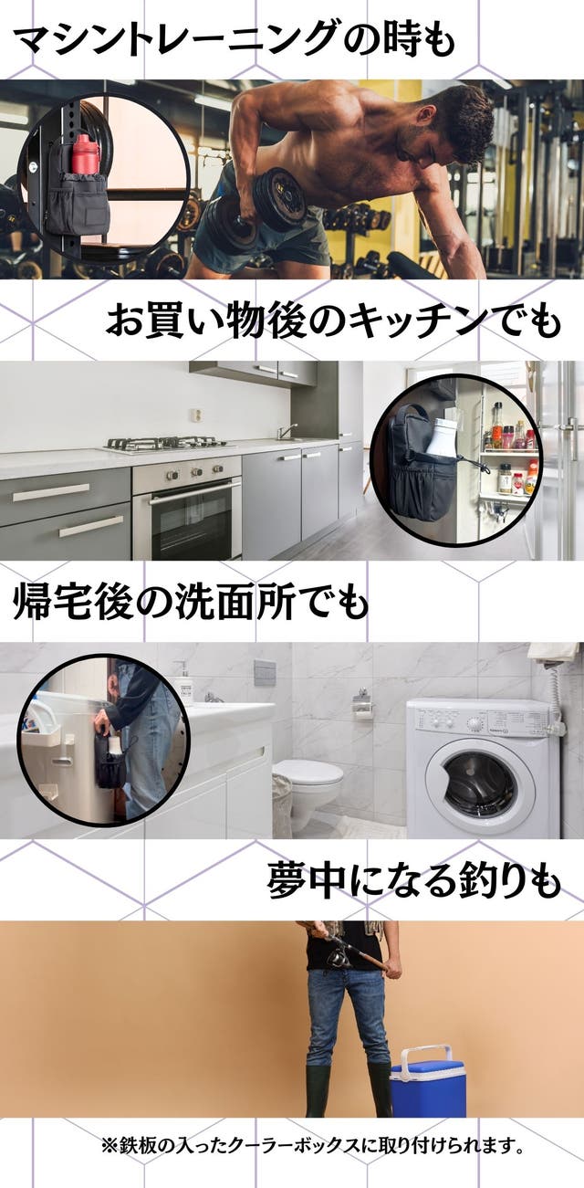 - 強力マグネット内蔵でピタッとくっつく。「ちょい置き」「ちょい掛け」にとっても便利。