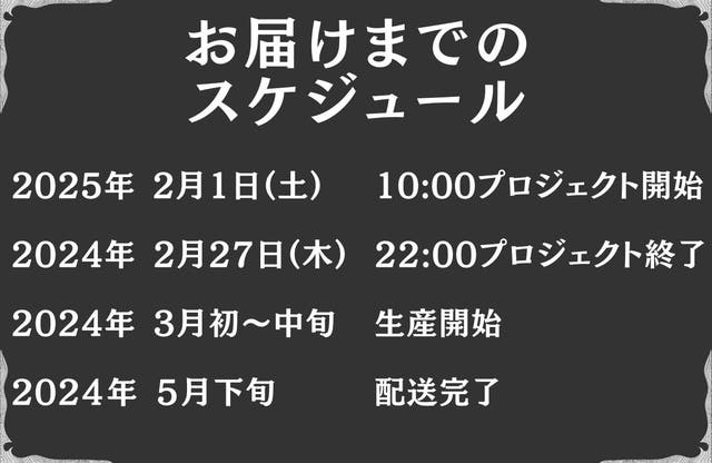 このプロジェクトはAll in型です。目標金額の達成に関わらず、プロジェクト終了日の2025年02月27日までに支払いを完了した時点で購入が成立します。
