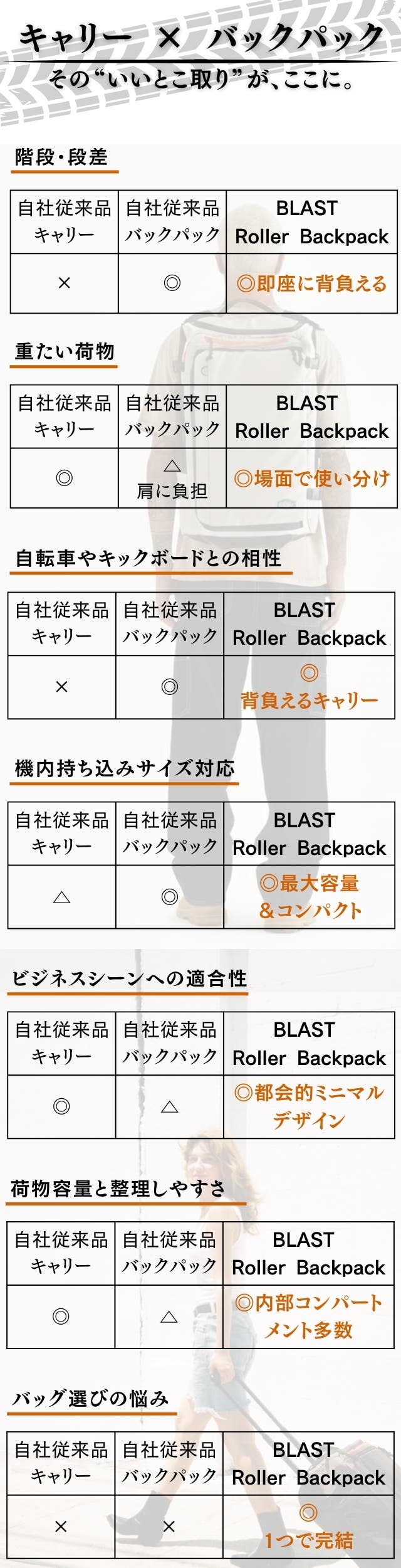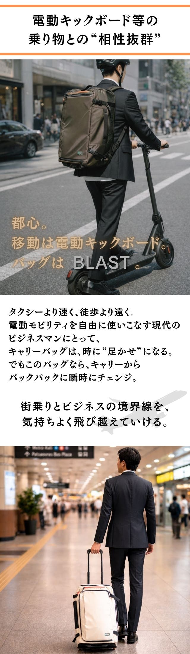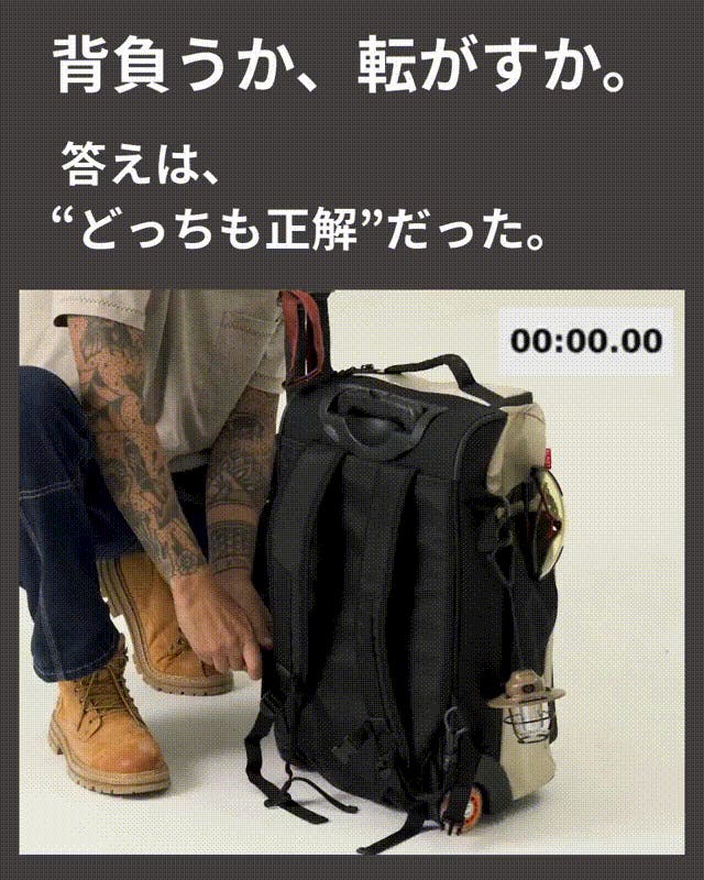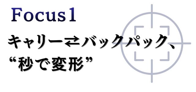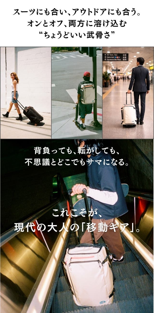 - キャリーが邪魔になる階段を、2秒でバックパックへ。背負って自由に駆け抜ける。