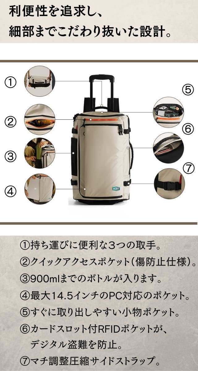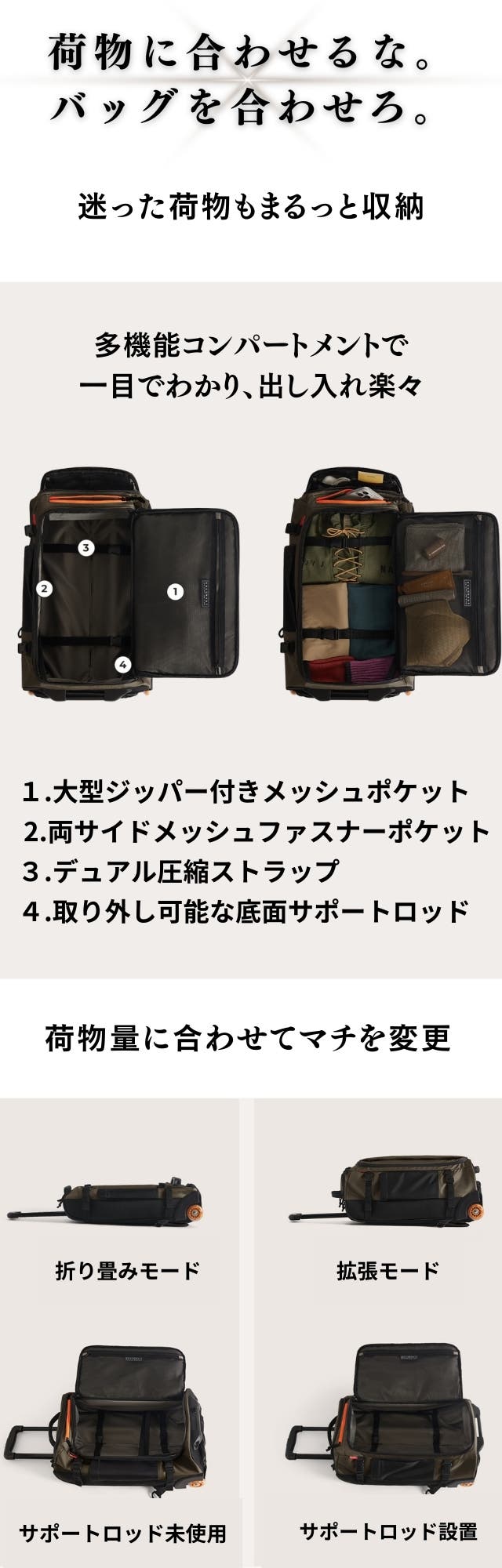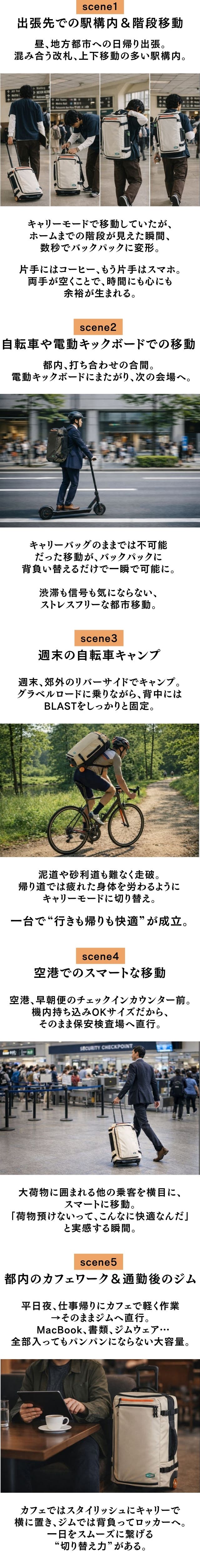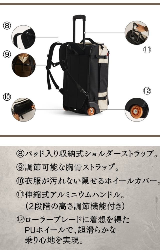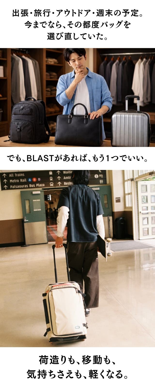 - キャリーが邪魔になる階段を、2秒でバックパックへ。背負って自由に駆け抜ける。