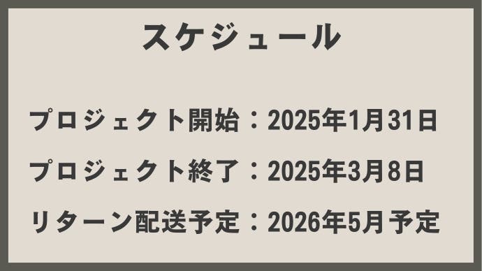 ・本プロジェクトを通して想定を上回る皆様から応援購入を頂き、現在進めている環境から量産体制を更に整えることができた場合、正規販売価格が予定価格より下がる可能性もございます。