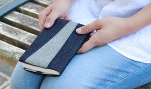 職人が手作りでつくる一点ものなのでプレゼントにもおすすめです。ジーンズを作る際に出る端切れを再利用したブックカバー。デニム生地の表と裏の表情の違いを切り返しのデザインに取り入れているのがさりげなくオシャレです。