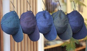 光の当たり方によって色が変わって見える、職人が染めたデニムキャップです。