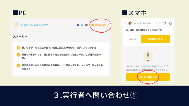 3-1. シェア支援ありがとうございます!実行者への問い合わせより、メッセージで必要事項をご記入お願いします。