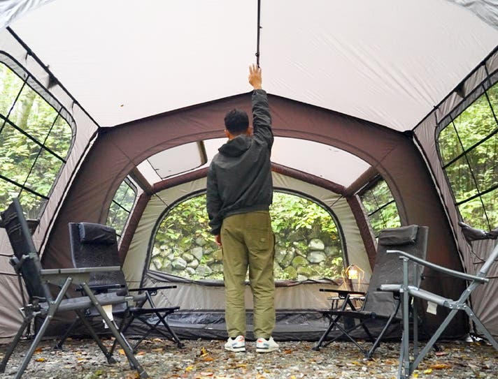 テント内かがまず、室内で自由に移動・着替えもできる圧倒的な開放感。