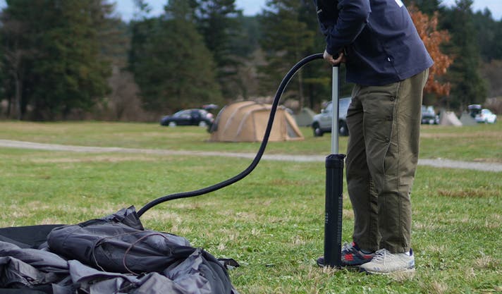 別売りの全自動エアポンプを使用すると、さらに楽に設営・撤収が可能です。