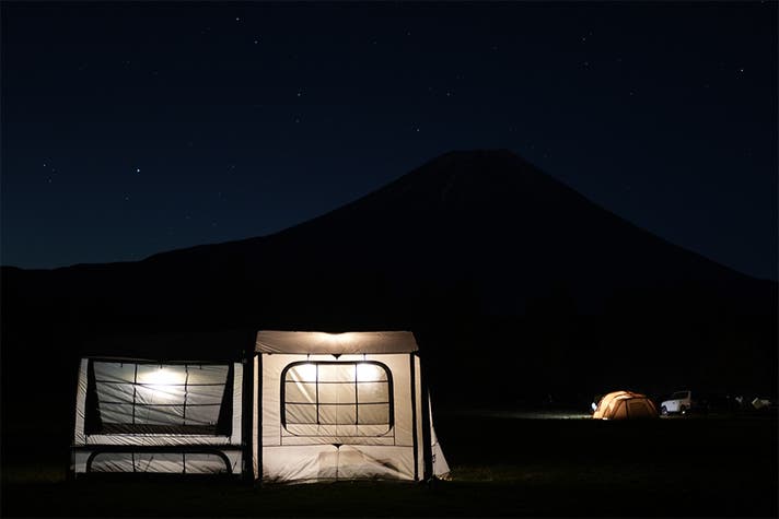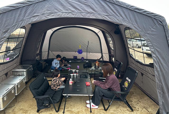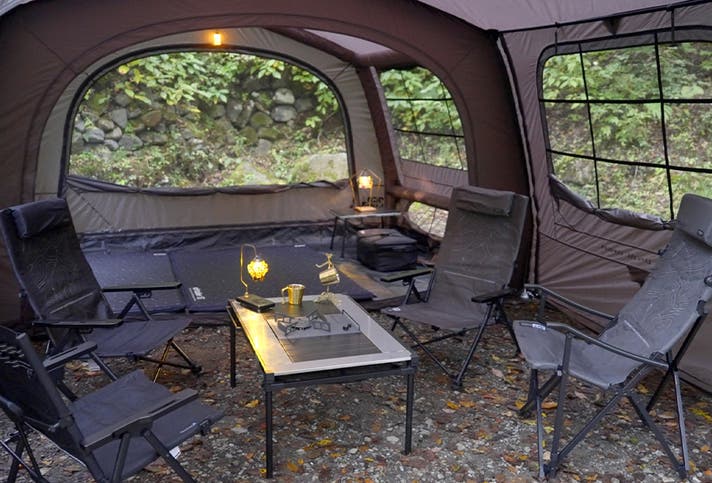 例えば、前室はテーブルを置いて家族や仲間が集まるリビング空間・ギアや靴を置く土間スペースなど。さらに奥は寝室スペースとして使い分けも可能です。