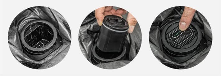 よりスムーズな設営に便利なアイテムです。120Wの高出力と、2基のBLDCモーターを内蔵。高速かつパワフルな送風に加え、吸引機能にも対応しています。