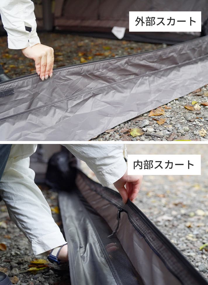 T-250は、グラウンドシートを本体と全面ファスナーで連結可能です。