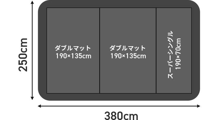 ダブルマット2枚+スーパーシングルマット1枚の内部配置が可能。