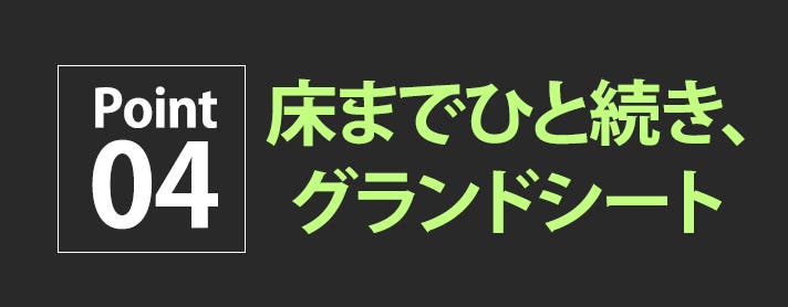 床と壁が一体化することで、砂や落ち葉、虫などの侵入を抑え、テント内をすっきりと保ちます。