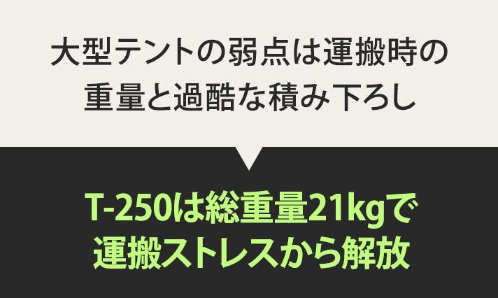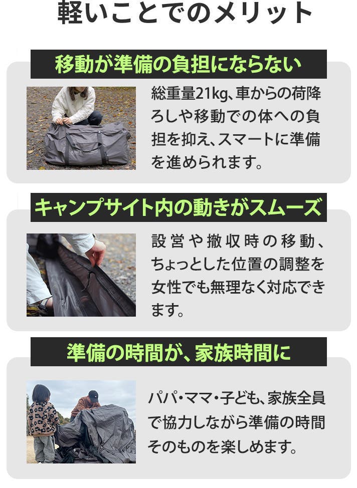 大型エアテントの常識を覆す合計”わずか21kg”の衝撃。