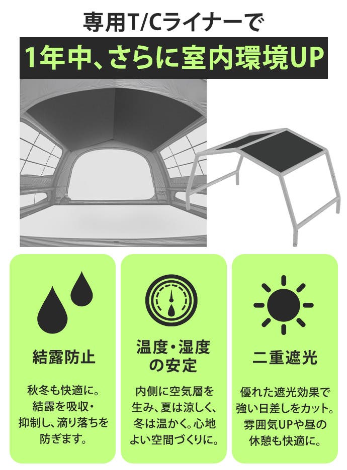 - 【オールシーズン快適】開放型パノラマビュー&エアベントシステムで通気・遮熱・プライバシーに配慮