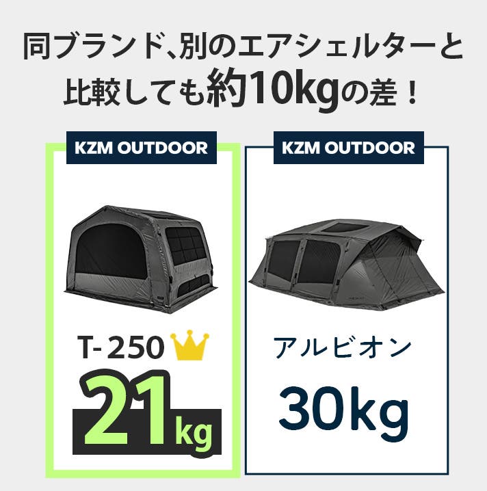 KZM OUTDOOR T-250エアシェルターの使用感を共有します!