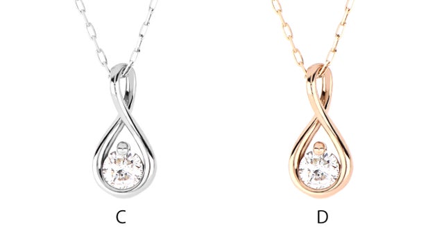 素材は10金「ホワイトゴールド」と「ピンクゴールド」のバリエーションを設け、好みに合わせてお選び頂けます。