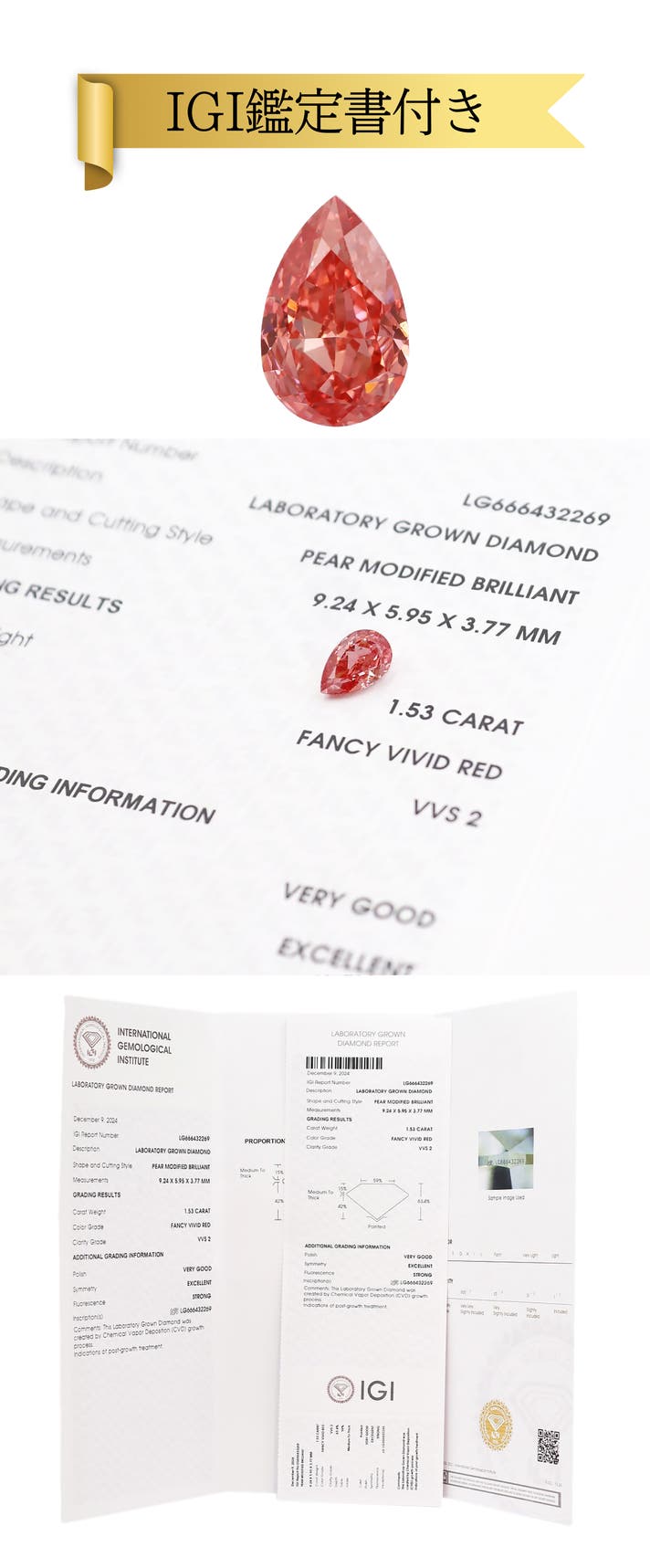 世界的にも稀少な「Fancy Vivid Red」5点のみを厳選し、IGI鑑定書付き・実物保証でお届けします。
