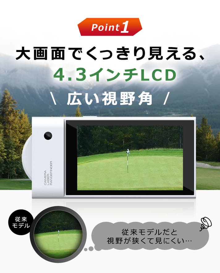 LCDモニターで確認・操作ができる、新感覚のゴルフ距離測定器です。