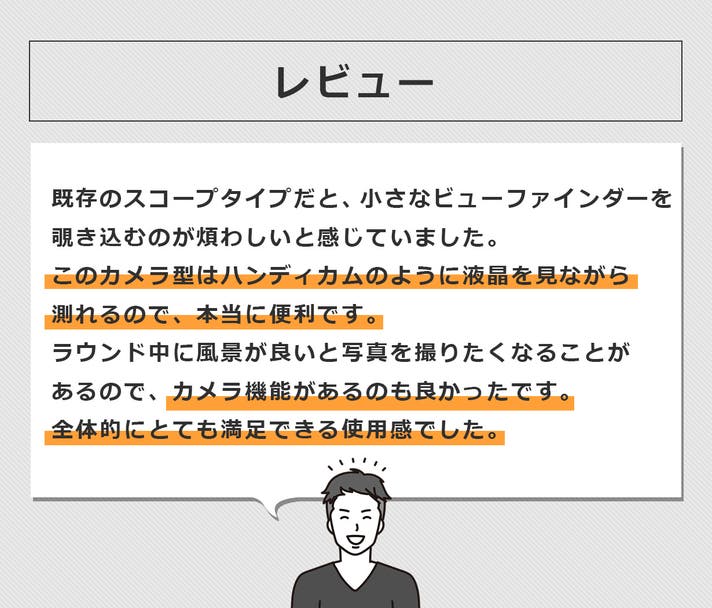 反応スピードにも優れ、プレーのテンポを崩さず距離情報を把握できます。