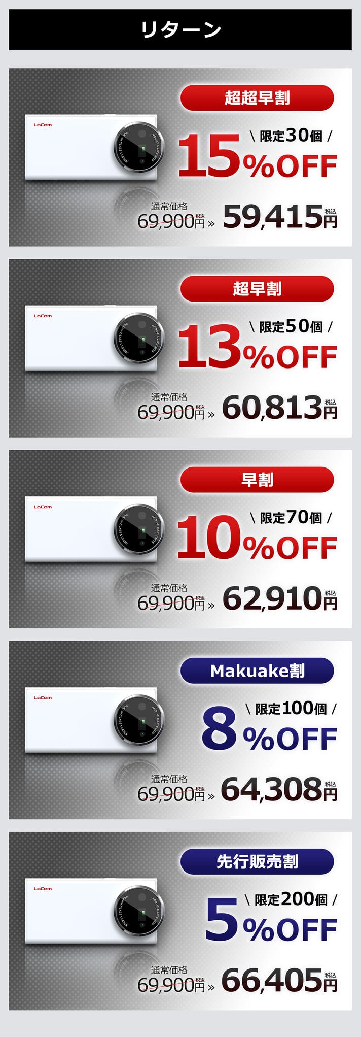 同梱内容:一般販売予定価格69,900円の15%OFF(税・送料込)