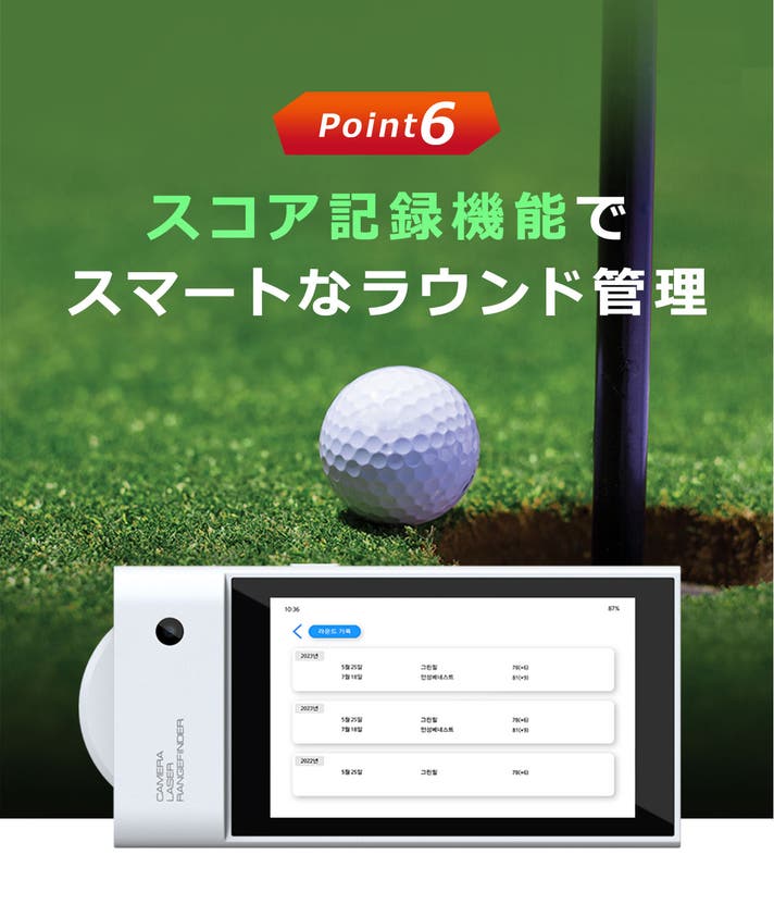 本体にスコアを記録できるため、スマホやスコアカードを取り出す手間がありません。