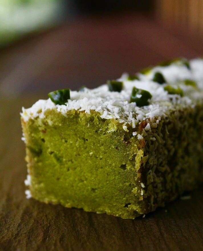 サクサクとした心地よい歯触りがしっとりと焼き上げたトルタと絶妙な食感のグラデーションを生み出しながら、沖縄にぴったりなトロピカルでミルキーなその風味が、ピスタチオにとても良く合うのです。