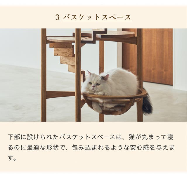 このキャットツリーハウスも、同じ哲学のもとに生み出された一品。自然の木目を活かし、シンプルさと機能美が際立つデザインで、猫と人の生活空間を豊かに彩ります。