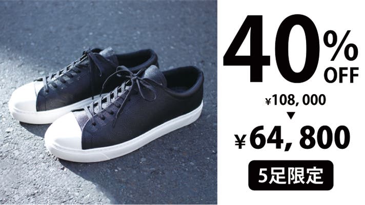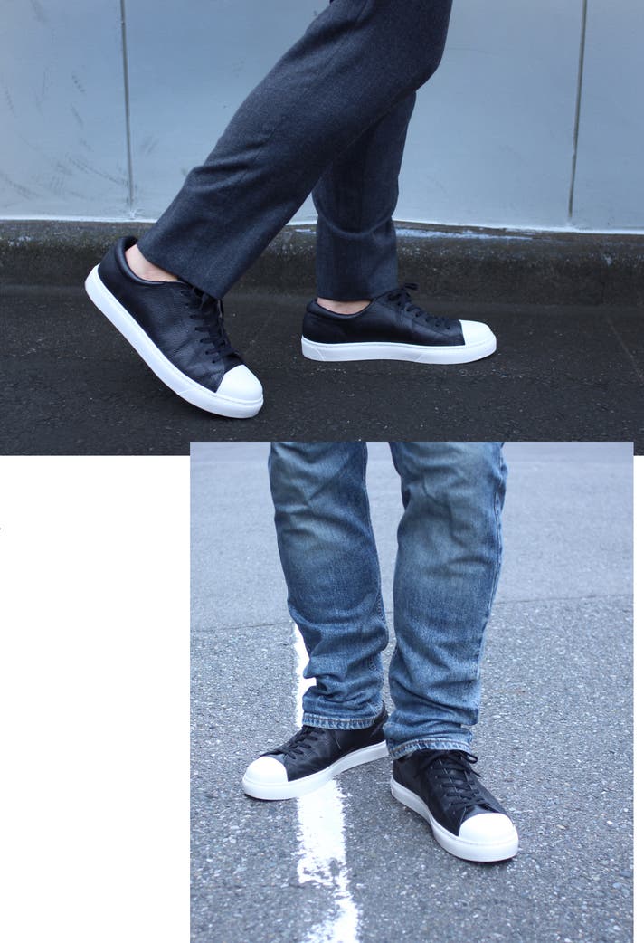 スーツスタイルに合わせても上品な光沢を演出し、カジュアルな装いも格上げしてくれる、そんなスニーカーとなりました。