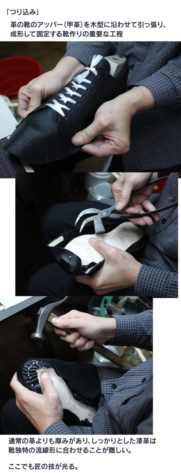 しっかりした漆革に合う履き心地に仕上げるために、今回なんとオリジナルの木型を作成!