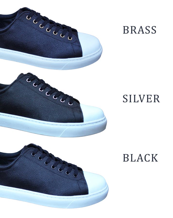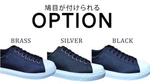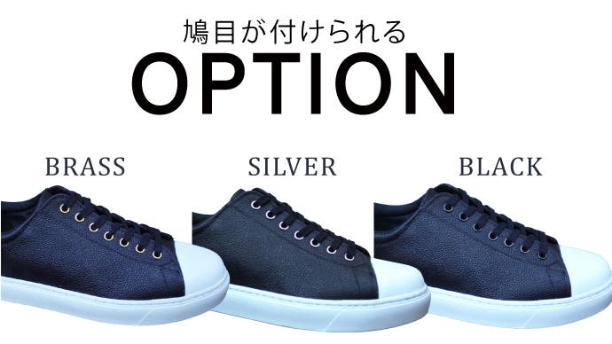 漆のレザースニーカー、それだけでも希少アイテムですが、さらに特別感のある人と被らないスニーカーを目指すならオプションで鳩目を付けることが可能です。