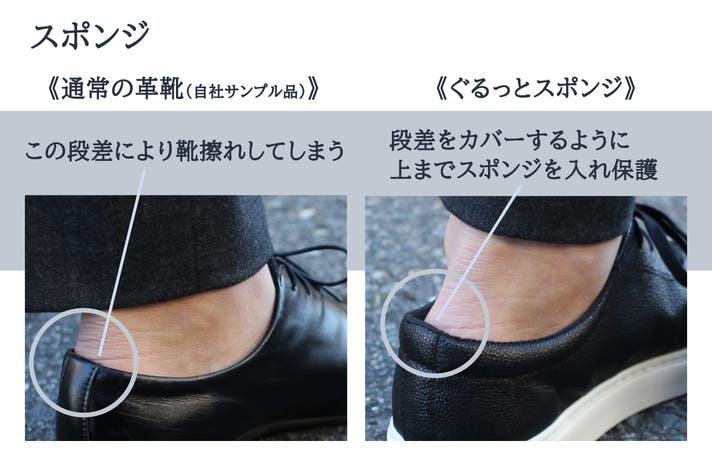 そして靴はどうしても踵に縫い目が必要となります。この縫い目や革の厚みの段差が、靴擦れの原因となるのです。