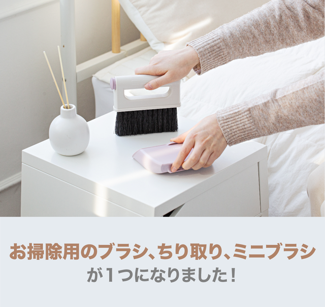 - 小さいのに多機能なお掃除ブラシセット!ブラシ、ケース兼ちり取り、ミニブラシまで!