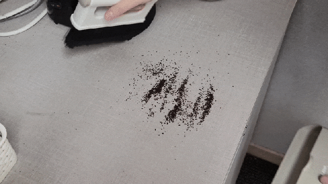 お掃除ブラシは机の上はもちろんのこと、ソファや床などあらゆる場所でお掃除したいときにすぐ使えます。