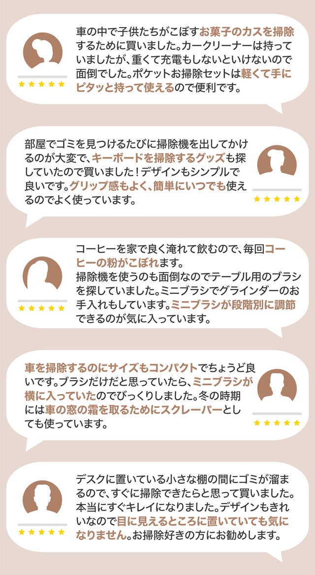 そんなお悩みをお掃除ブラシ・ちり取り・ミニブラシが一緒になった!LAHPの『ポケットお掃除ブラシセット』が解決します!