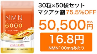 [超早割]50袋セット割 75%OFF NMN100mg 17.0円