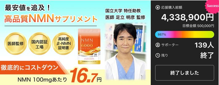 昨年のMakuakeの挑戦では、NMN 6000を通して累計400万円以上の応援購入をいただきました。本当にありがとうございます!