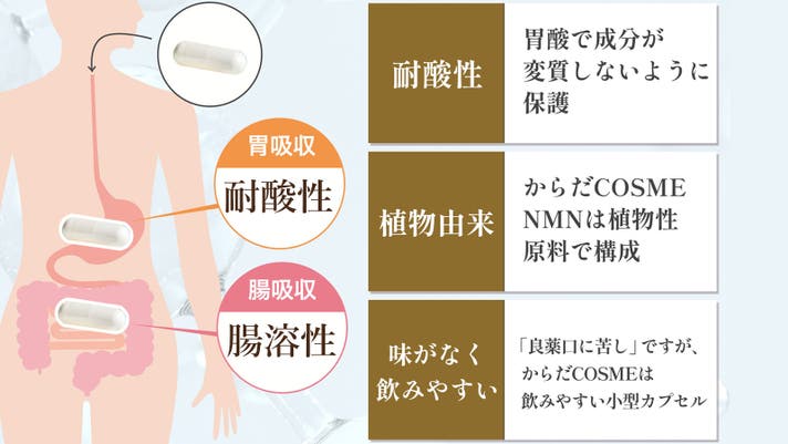 ✅ 耐酸性・腸溶性の植物性カプセル(NMN25200+と同じ)