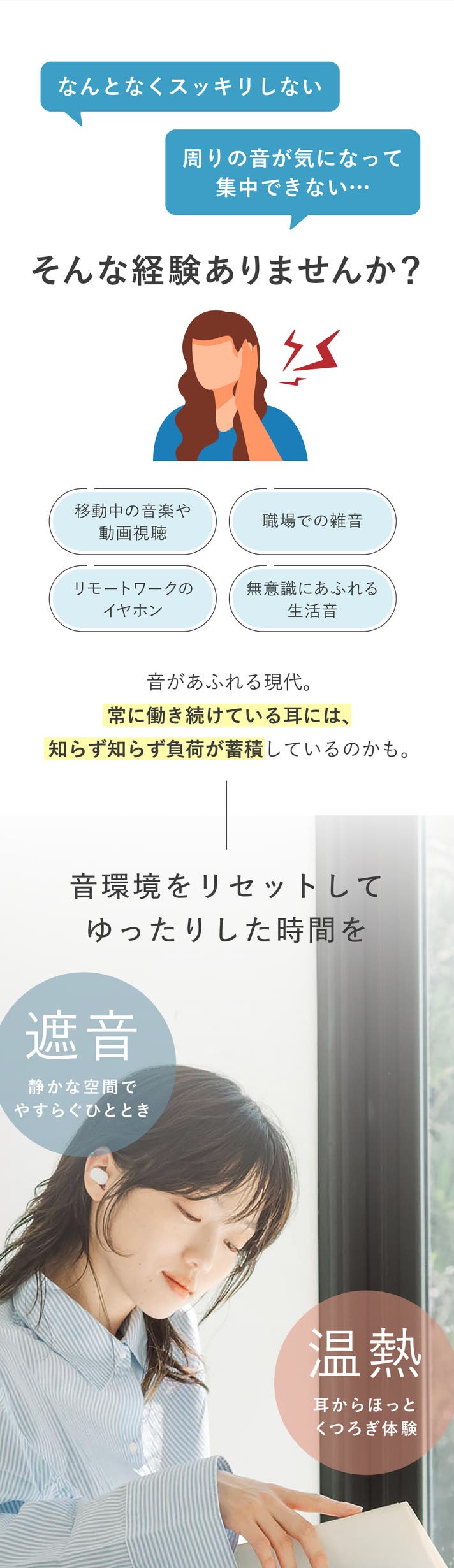 - 【音から耳を解放】遮音効果で常に働く耳にも休息を。静かな空間で気持ちも穏やかに。