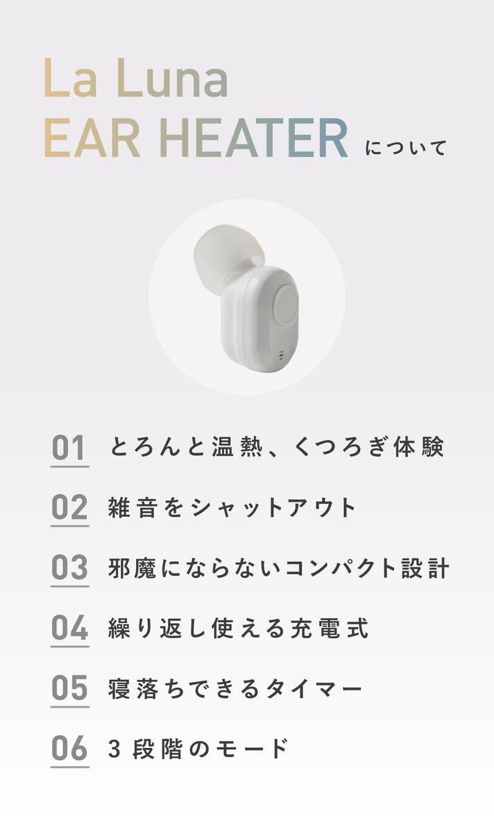 「Makuake(マクアケ)」は、実行者の想いを応援購入によって実現するアタラシイものやサービスのプラットフォームです。このページは、 プロダクトカテゴリの 「【おやすみ前の新習慣】遮音×温熱でとろんと休息。LaLuna充電式イヤーヒーター」プロジェクト詳細ページです。