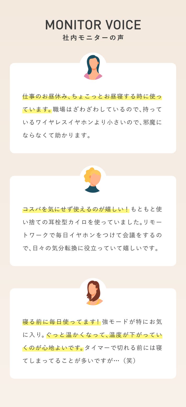 - 【温活に新提案】内側から耳を温めて、とろんとひろがる休息体験。充電式で繰り返し使えます。