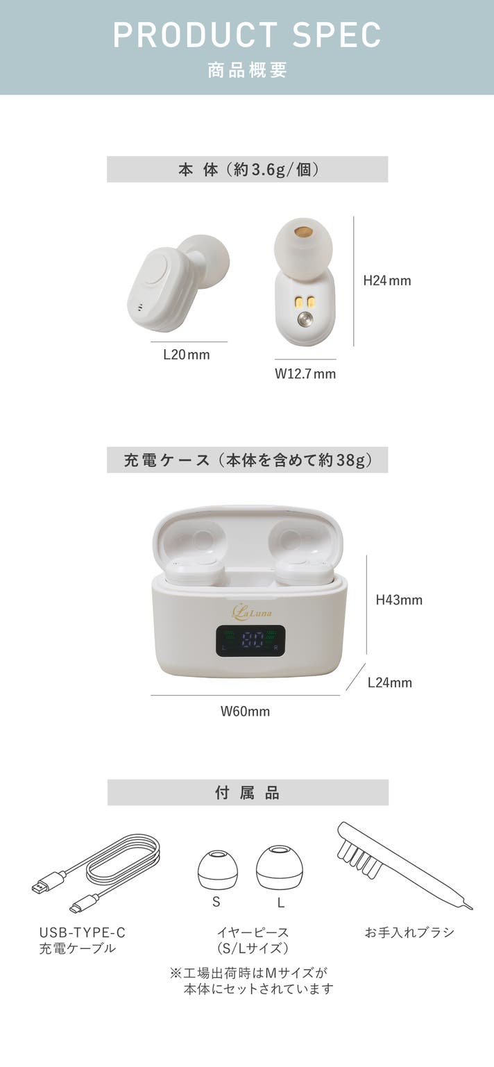 - 【補聴器メーカーとの開発】睡眠時に着用しても違和感の少ない、フィット&コンパクト設計を実現。