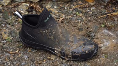 キャンプ後の泥だらけの靴